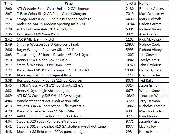 All winners not present will receive a claim form in the mail. You can not pick up your gun with out the claim form.